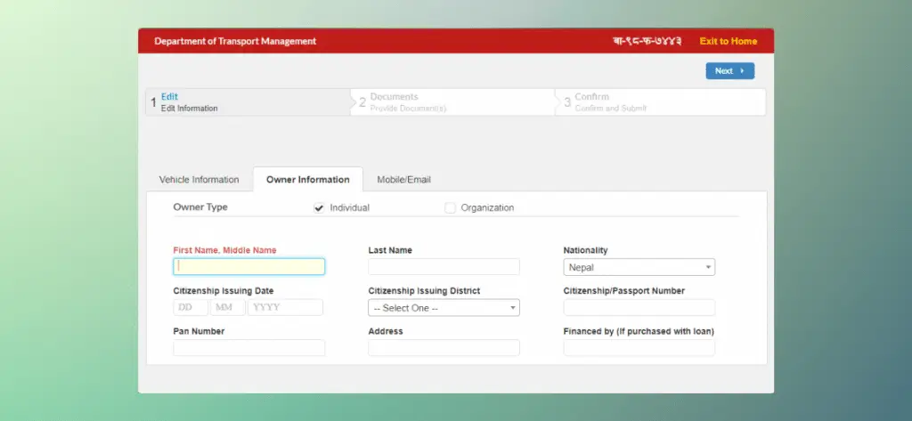 You can apply for an Embossed number plate in Nepal through an online application by following these 6 easy steps listed below.
